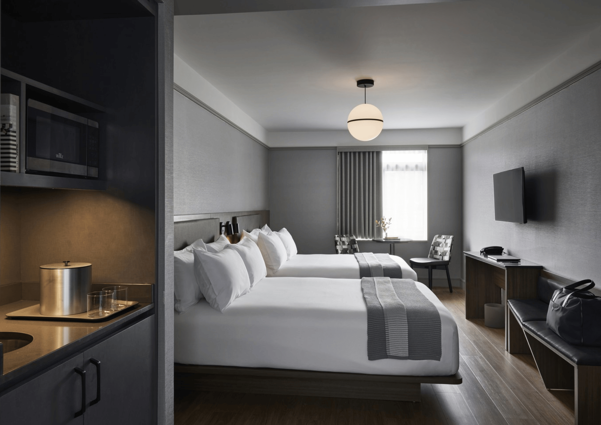 Step into the modern comfort of our Superior Double Queen ADA rooms, offering a spacious 275 square feet of inviting space. Rest easy knowing that our Superior Double Queen rooms are ADA compliant, ensuring accessibility for all guests. Perfect for accommodating up to 4 guests, these rooms provide a serene retreat in the heart of bustling New York City.